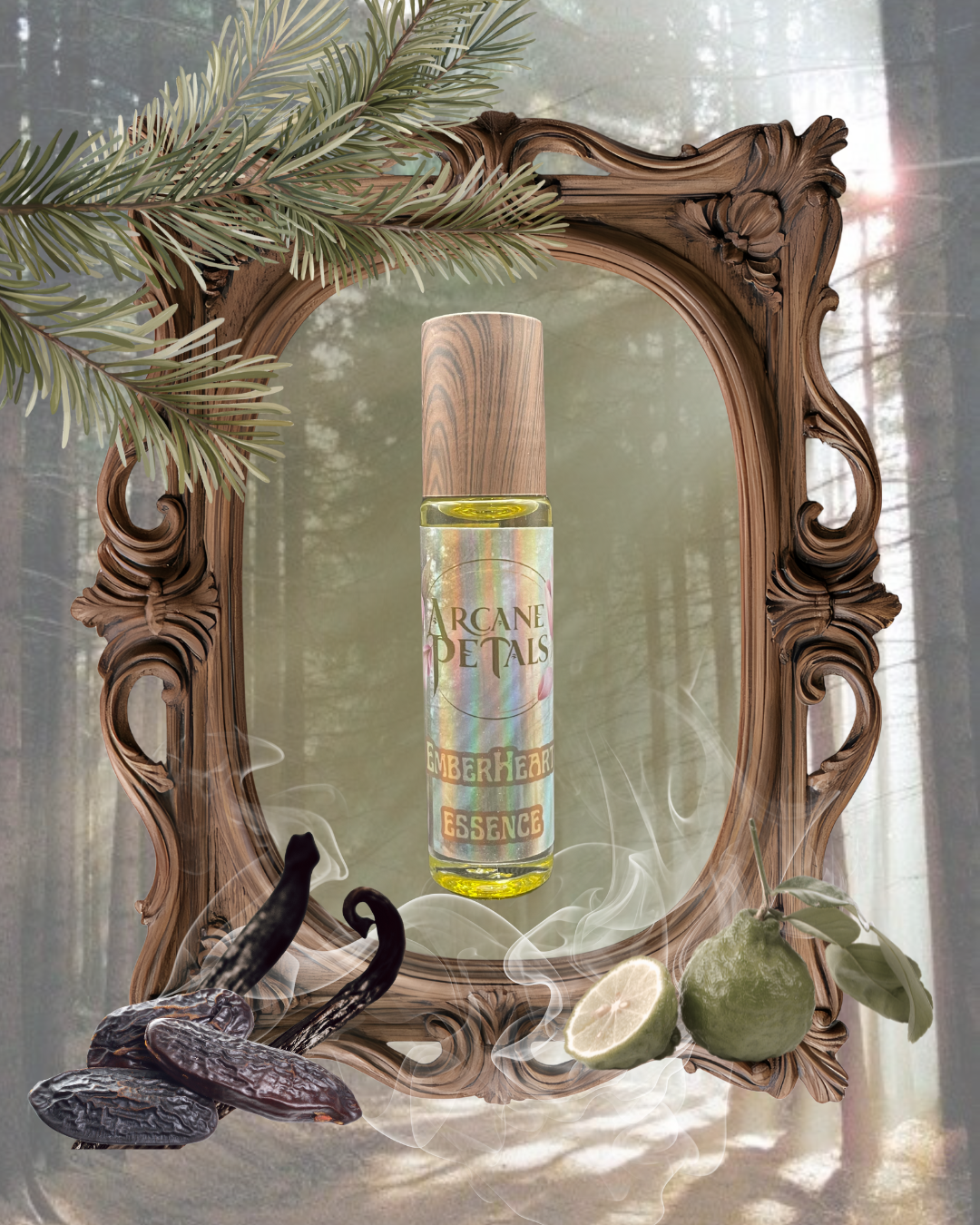 Emberheart burns quietly β steady and comforting like a bonfire after the storm. It opens with fresh pine and fir before melting into amber and vanilla warmth, anchored by leather and tonka. It smells like laughter under starlight and the safety of someone who stays.